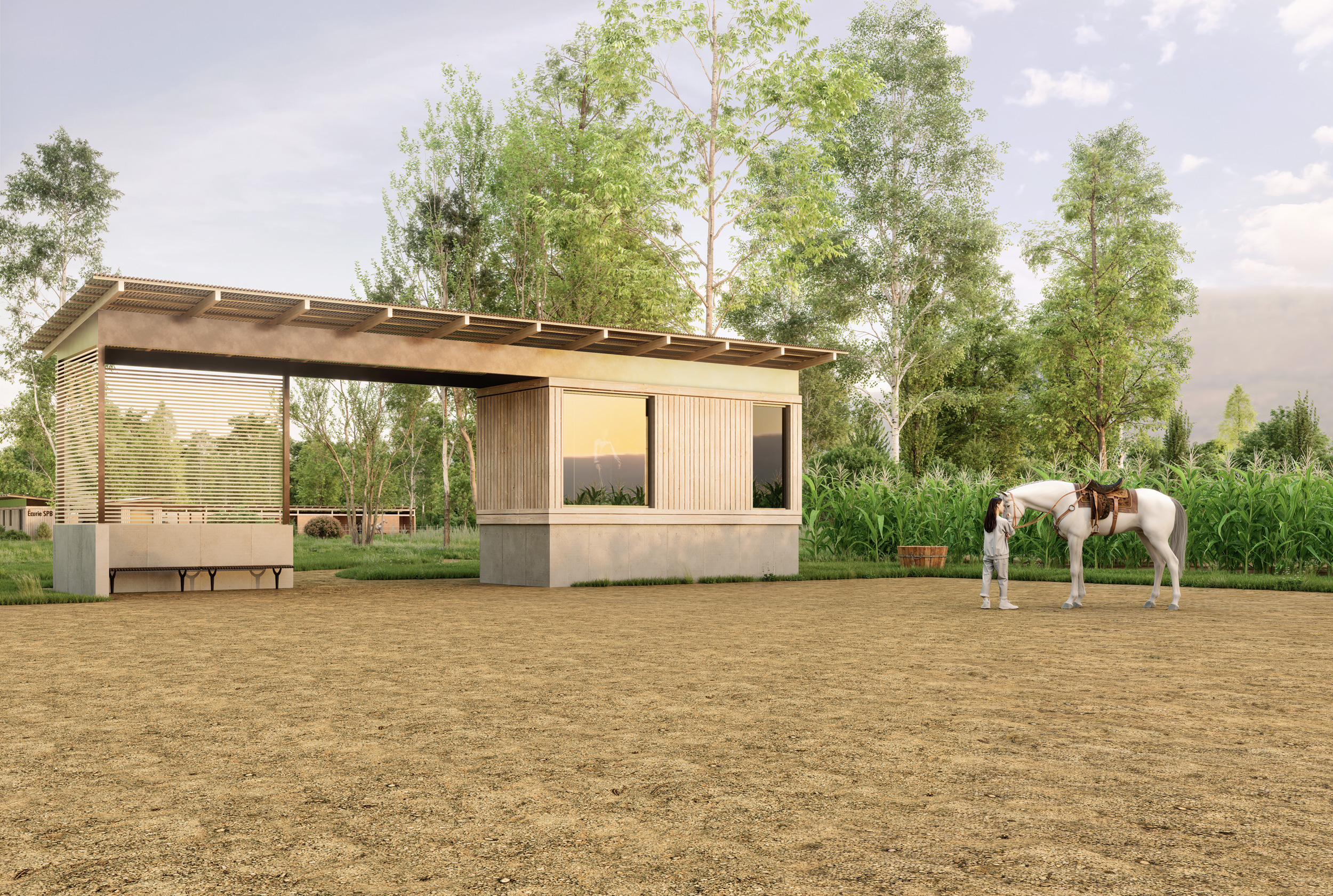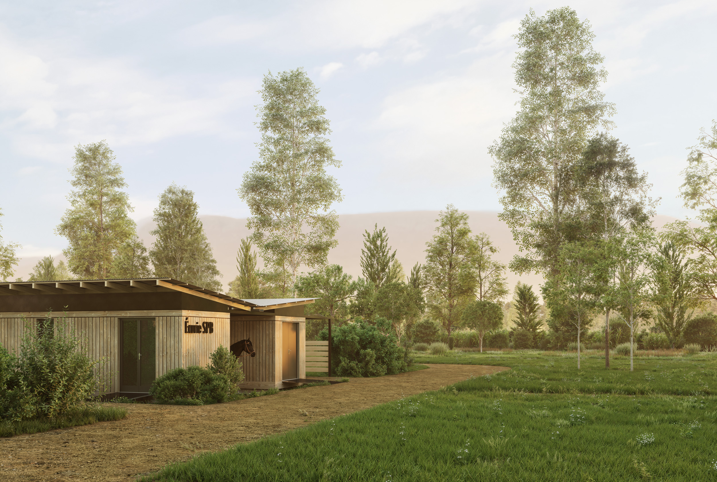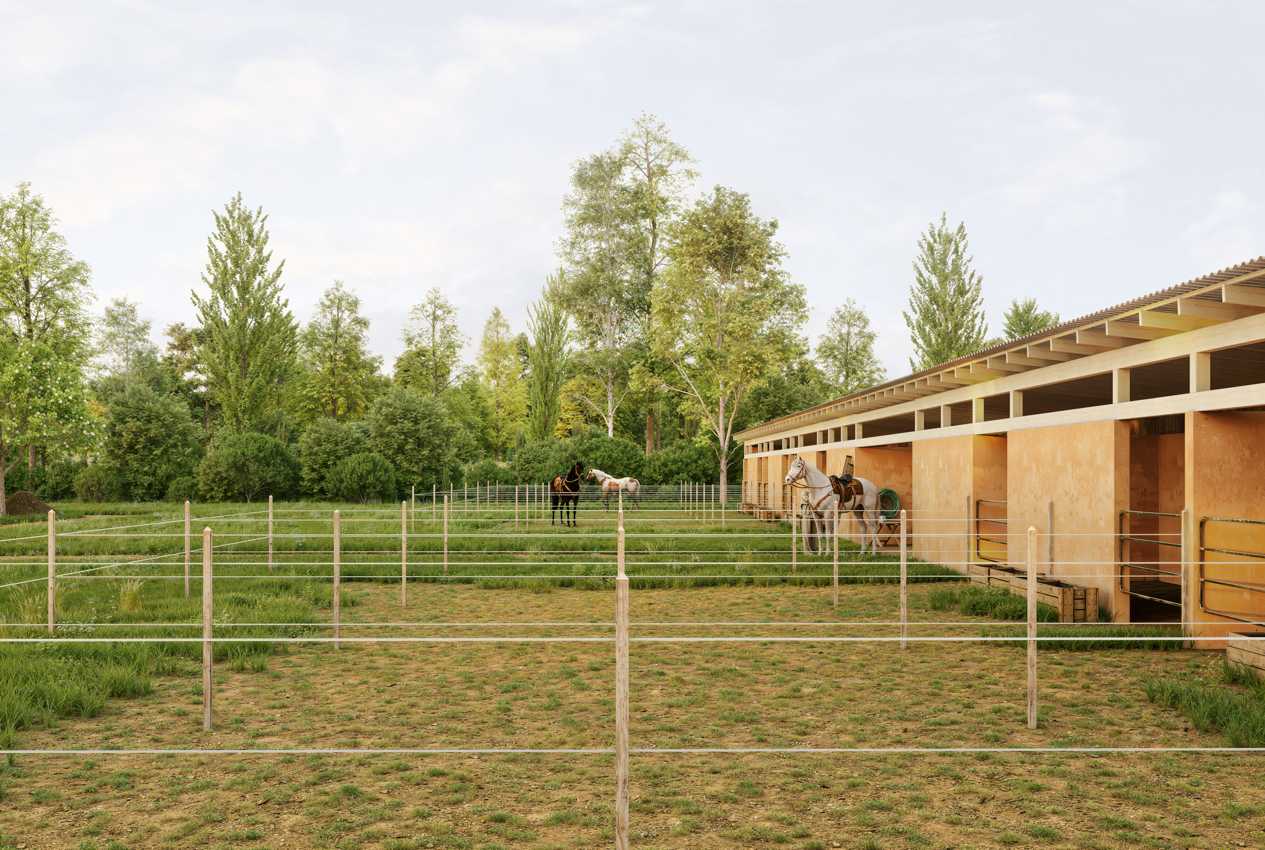 Perspectives photoréalistes de l’aménagement d’un centre équestre Concepteur du projet : Agence d’architecture Little Z